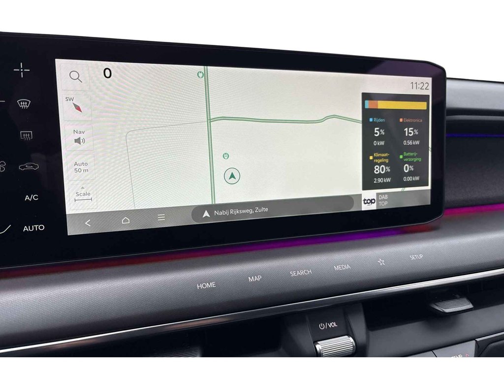 - Cruise control met adaptieve cruise control stop & go functie, adaptive CC gekoppeld aan kaart, ACC gekoppeld aan mapping - hoekreactie, ACC gekoppeld aan afrit snelweg en ACC gekoppeld aan mapping - stad