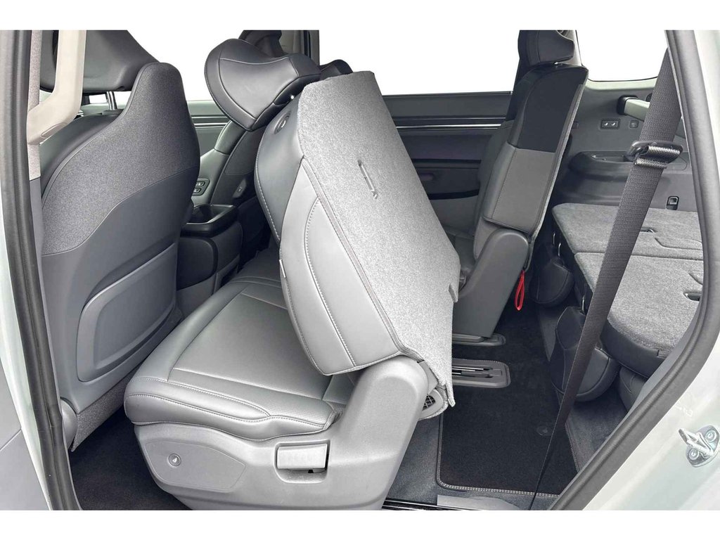 - 3 asymmetrische neerklapbare verwarmde geventileerde zitplaatsen achterin in de vorm van een bank naar voren kijkend zonder elektrische verstellingen met een niet verwijderbaar opklapbaar kussen plat te vouwen op de vloer, manueel, manueel en Neerklapbaar via Afstandsbediening